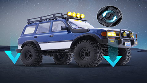 This configuration allows the brushless RC car model to easily switch between precise low-speed crawling and fast dynamic driving. Combined with the LC80 Pro's brushless motor and portal axles, it provides optimal control and power performance whether crawling over steep obstacles or speeding on open trails, enhancing its off-road capabilities across various terrains and meeting the needs of off-road enthusiasts seeking both challenge and speed.