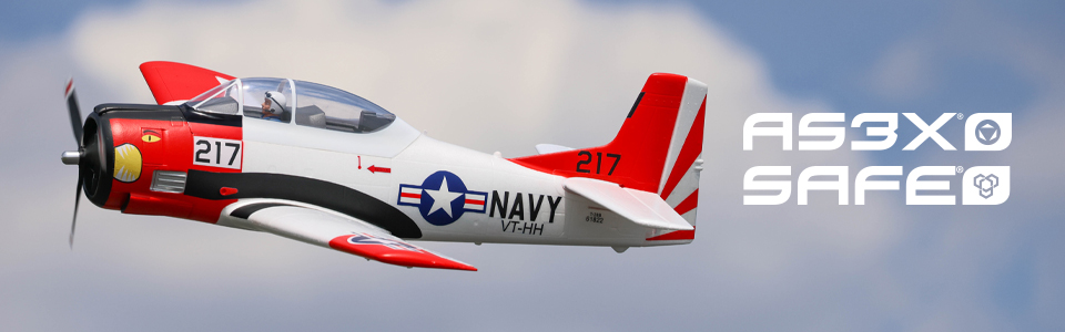E-flite® T-28 Trojan 1200mm: The smartest, most powerful and easiest-to-fly scale warbird with functional flaps & retracts, 3S/4S power, and SAFE® Select technology for seamless progression from trainer to advanced aerobatics.